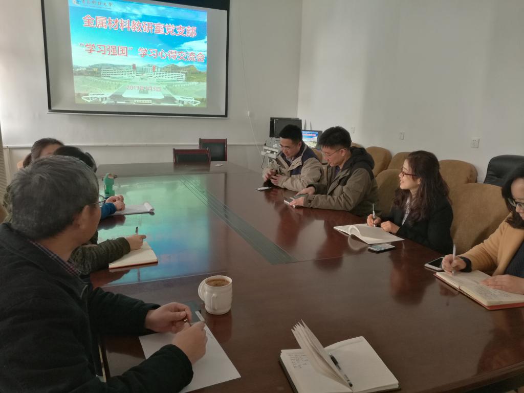 专业教学研讨会结束后,金属教研室党支部的全体党员同志开展了“学习强国”软件的学习交流会。会上,赵云琰老师结合自己所学,详细地阐述了使用“学习强国”进行政治理论学习的方法、心得与收获。其他党员同志反省、检讨了自己在政治理论学习过程出现的问题。通过这次党支部活动,党支部全体党员同志提高了政治站位,激发了政治理论学习的热情。在以后的工作中,必将牢记习近平总书记新时代教育理念,尽心尽责教育、培养员工,真正成为一名合格的新时代“教书先生”。