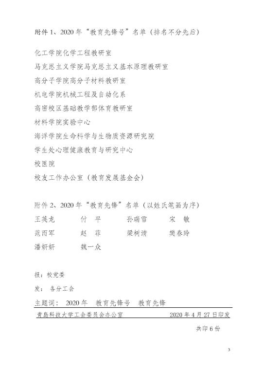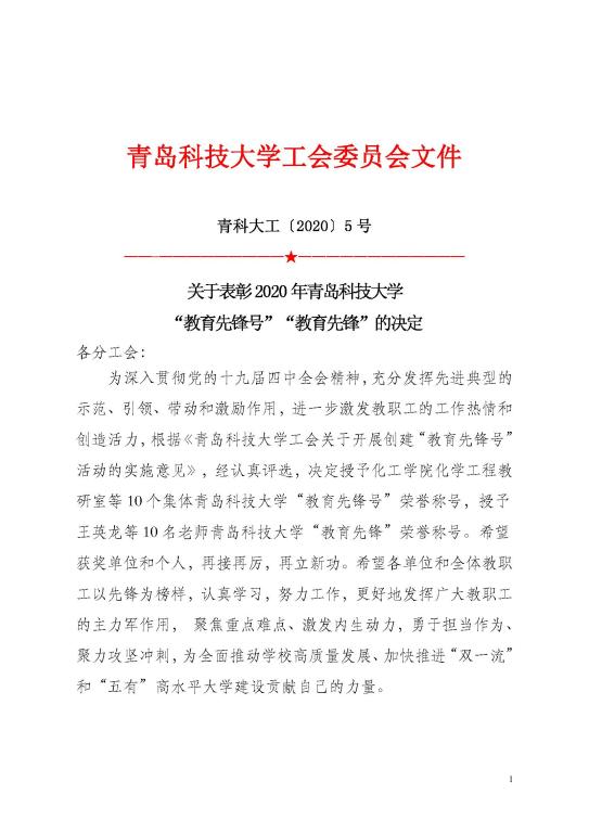 为深入贯彻党的十九届四中全会精神,充分发挥先进典型的示范、引领、带动和激励作用,进一步激发教职工的工作热情和创造活力,根据《bv伟德中国官方网站工会关于开展创建“教育先锋号”活动的实施意见》,经认真评选,2020年4月27日bv伟德中国官方网站工会委员会授予“材料公司实验中心”等10个集体bv伟德中国官方网站“教育先锋号”荣誉称号。