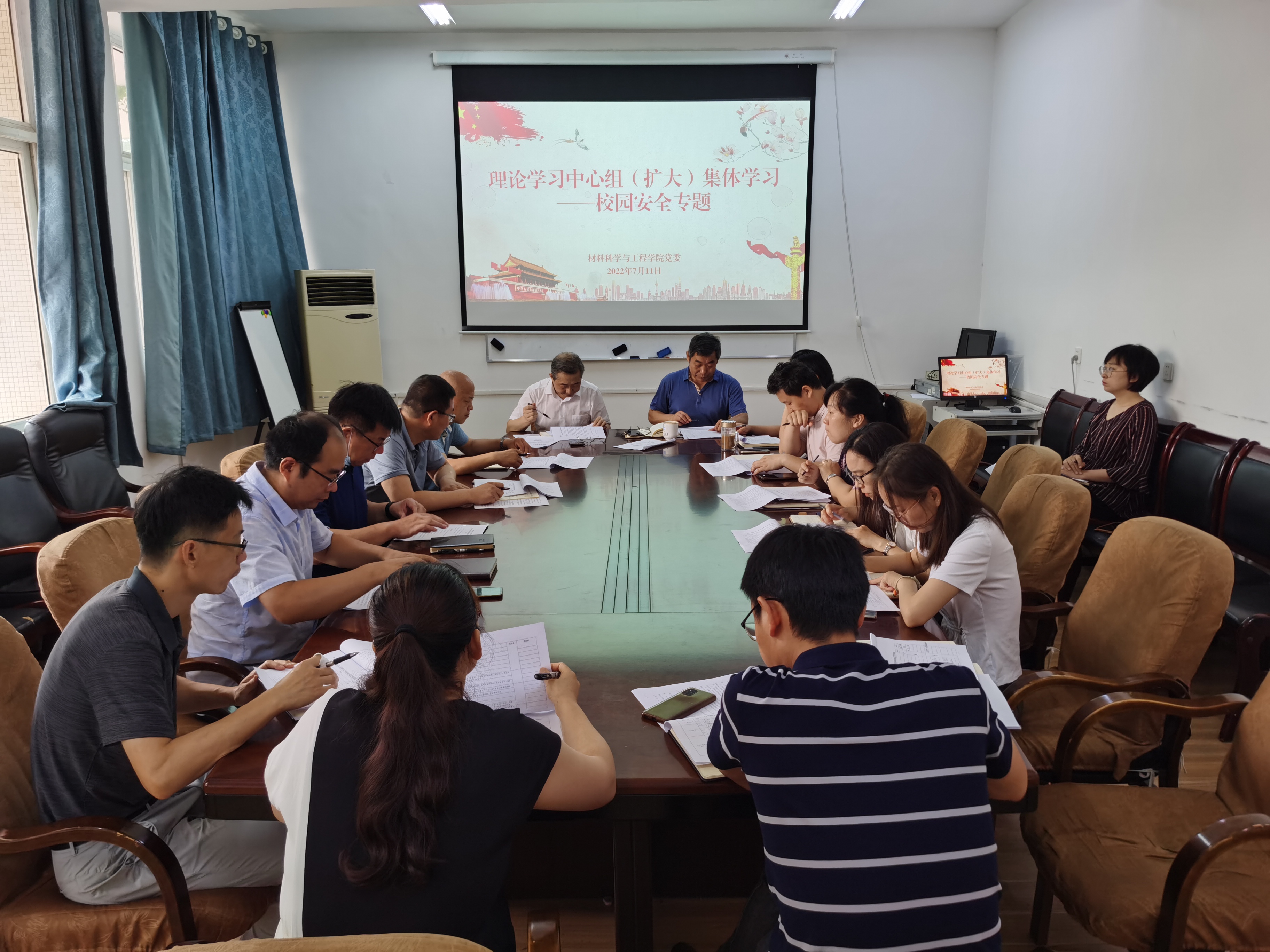 7月11日上午,公司党委理论学习中心组举行集体学习(扩大)会议暨校园安全稳定工作专题会议,传达学习上级及公司有关校园安全稳定工作精神,并结合公司实际,研究贯彻落实措施。会议由公司党委书记杜芳林主持,公司领导班子成员、党委委员、教工党支部书记、办公室负责同志参加会议。