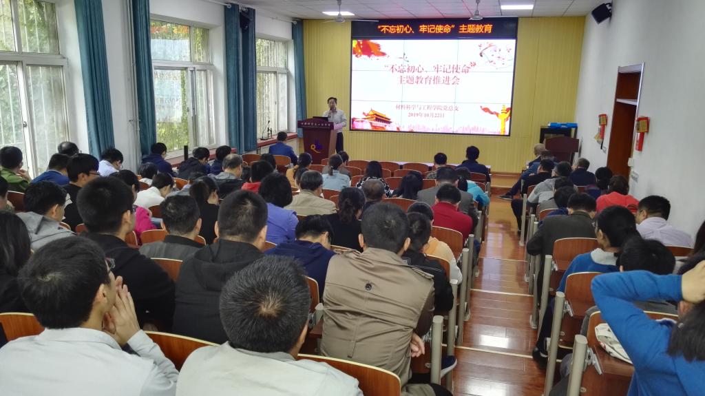 10月22日下午,材料公司党总支在公司101会议室召开“不忘初心、牢记使命”主题教育推进会,公司领导干部、全体教师参加了此次会议,会议由公司党总支书记王培山主持。