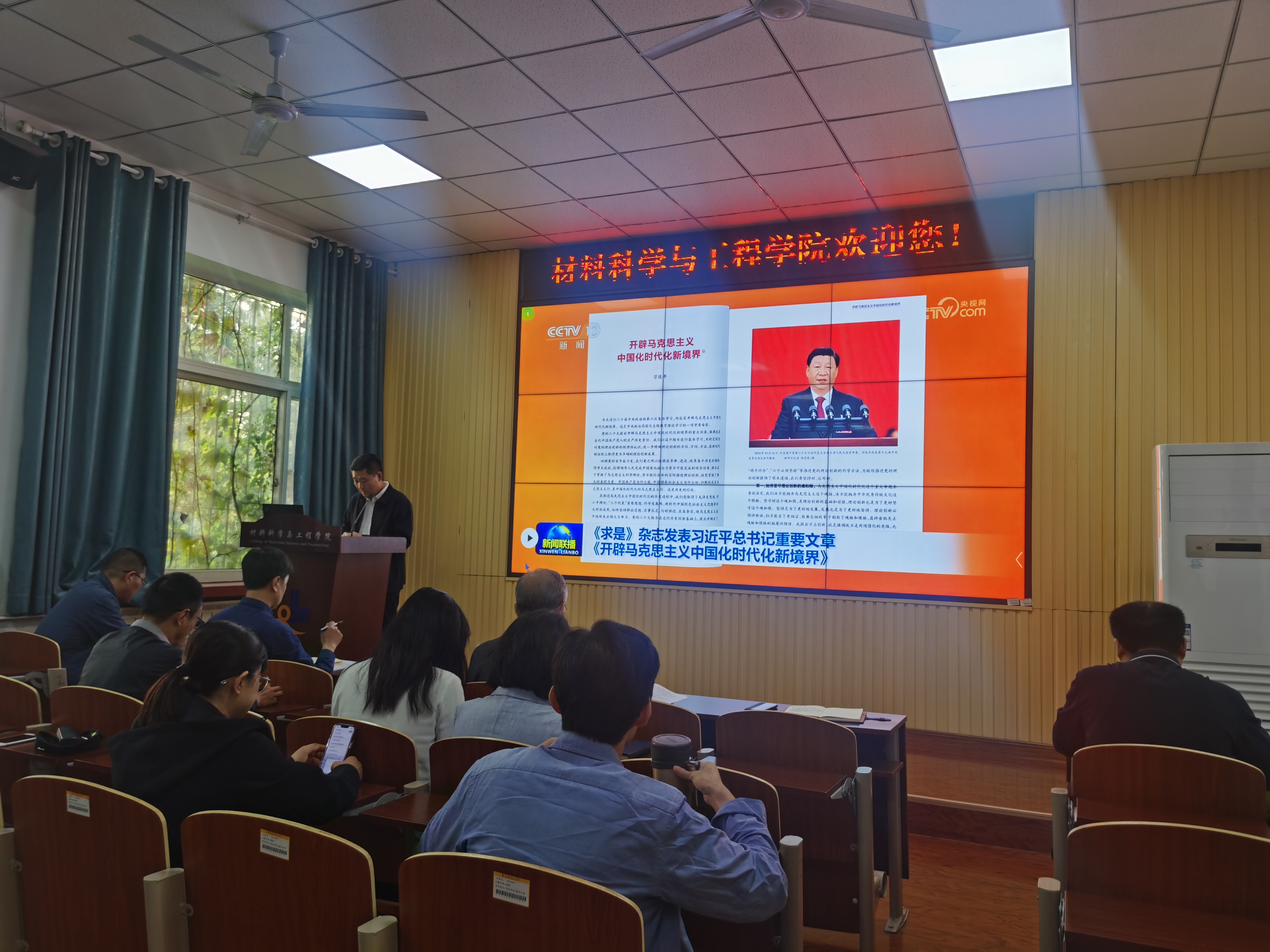 会上,全体教师集体学习了《求是》杂志发表的习近平总书记重要文章《开辟马克思主义中国化时代化新境界》,就加强师德师风建设以及研究生导师在思政教育中第一责任人作用开展了培训。
