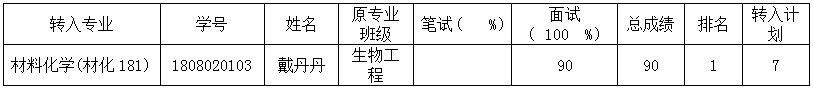 材料公司2018级转专业结果公示