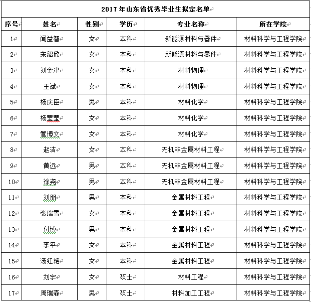 按照山东省人力资源和社会保障厅《关于做好2017年非师范类普通大中专公司优秀毕业生评选工作的通知》和公司《关于开展2017年山东省优秀毕业生评选工作的通知》的要求,bv伟德组织开展了2017年山东省优秀毕业生的评选工作。初步拟定闻益智等17位同学为bv伟德中国官方网站2017届省优秀毕业生,现将具体名单进行公示。