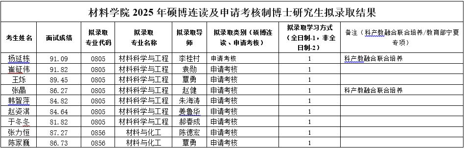 各位考生,根据公司正式下达给公司的2025年博士研究生招生指标数,结合前期考生资格审核结果和面试成绩,现将公司2025年硕博连读及申请考核制博士研究生拟录取结果进行公示。公示期为2025年4月28日-5月9日。