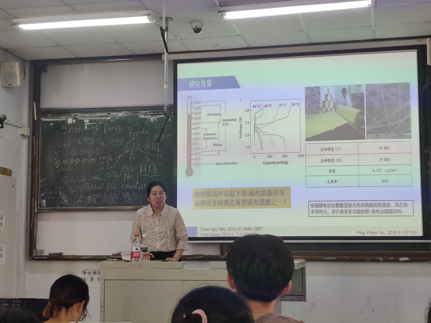 讲座中周震芳老师以自己的科研工作为例,介绍了锂-硫电池的研究背景及研究进展,并展示了未来宽温域锂-硫电池材料研究的设计策略。周老师细致且全面的讲解,使在场的员工对金属-硫电池有了系统的了解。在提问环节,同学们与周老师热情交流,经过周老师的讲解拓宽了自己的实验思路。