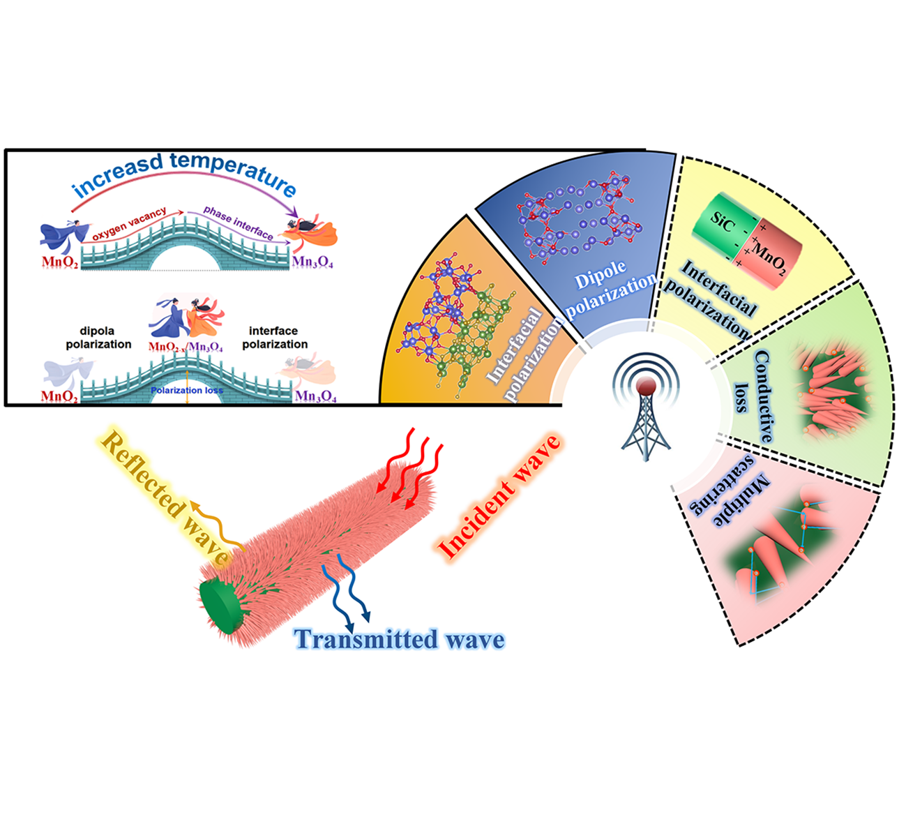 近日,bv伟德中国官方网站材料公司张猛/李镇江教授团队在电磁波吸收领域取得突破性进展,相关研究成果以“Regulating Oxygen Vacancies to Enhance Dipole and Interface Polarization for Highly Efficient Electromagnetic Wave Absorption in SiC@MnO2Nanocomposites”为题发表在学术期刊《Advanced Functional Materials》(IF=18.5)上。材料公司硕士生苗渝坤为第一作者,李镇江教授和张猛副教授为通讯作者,bv伟德中国官方网站为唯一通讯单位。
