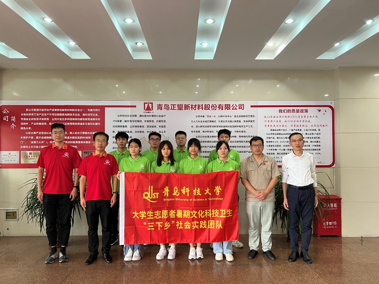 青岛正望新材料股份有限公司成立于一九九八年,是国家级重点高新技术企业。公司致力于钢水控制和保护材料的专业化生产,主要产品有长水口、浸入式水口、整体塞棒、石墨坩埚、保护渣、包芯线等。近年来,青岛正望新材料股份有限公司与材料公司开战了广泛而深入的产学研合作,是公司重要的实习实践基地和人才输送基地。接下来实践团将在企业里结合企业的产业特色开展进一步的专业理论学习、参观实验室与生产车间、参与一线生产等实习实践活动。