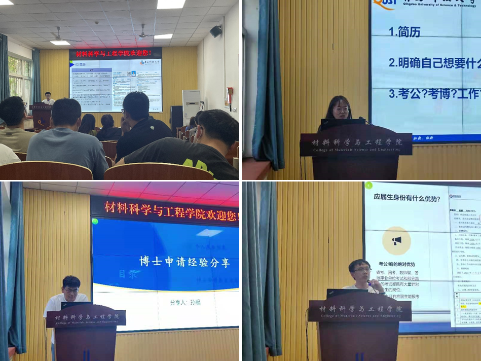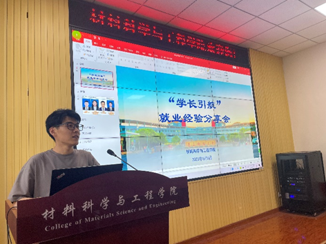 为打好2024届毕业生就业工作提前战,实现更加充分更高质量就业,6月8日材料公司楼101会议室,材料公司研究生会举办“学长引航”就业经验分享会,邀请2023届优秀毕业生孙旭、刘宇佳、王志强、赵毅进行求职干货分享,低年级研究生参加本次活动。