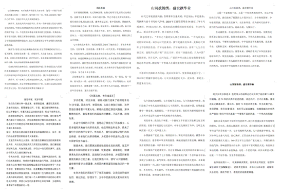山河披锦绣,盛世撰华章。在国庆来临之际,材料公司发动广大学子以“山河披锦绣,盛世撰华章”为主题征集征文。此次征文得到了同学们的积极投稿,同学们纷纷挖掘个人亲历、亲闻、亲见或所思、所感、所悟的真人真事,抒发了对党、对祖国、对中华民族、对家乡的热爱。身为新时代的青年,同学们表达了自己对于未来的向往,树立了远大志向,在青春的赛道上跑出最好的成绩,为中华民族的伟大复兴贡献自己的青春力量。