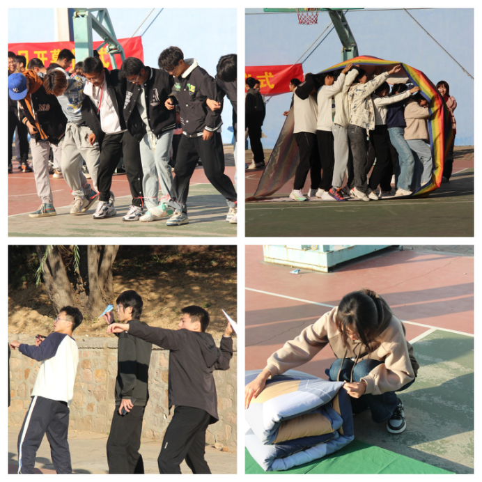 本次活动玩法多样,轻松有趣。有依赖团队默契的六人七足、“无敌风火轮”,还有展现个人动手能力和创造力的纸飞机大赛以及体现个人素质的叠军被。