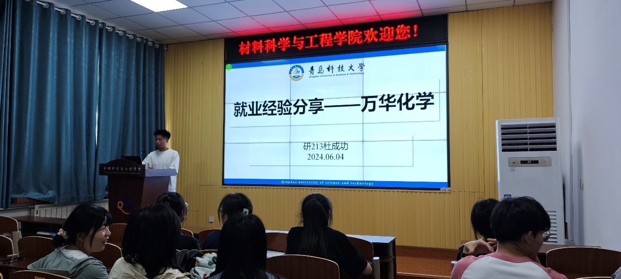 为指导研究生明确研生涯规划,深入了解就业以及申博的相关事宜,6月4日下午,材料公司邀请了入职万华化学集团的杜成功和成功考博升入苏州大学的于婉晴,在材料楼101报告厅举行了研究生毕业生就业及考博经验分享会。研一、研二各班级硕士生参加。