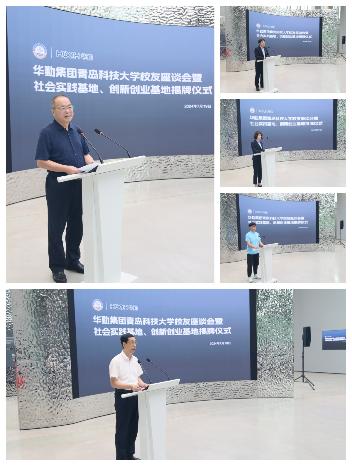 丁林在讲话中对兖州区及华勤集团为公司学科筑峰、科技创新、员工就业等方面提供的支持和帮助表示感谢,鼓励实践团的同学们结合自身专业知识和技能,在科技攻关最前沿、乡村振兴主阵地、“三下乡”的生动实践中经风雨、见世面、壮筋骨、长才干,描实绘清“青科大人的样子”。王营介绍了兖州区经济社会发展情况以及青年人才引进政策,鼓励企业积极寻求科研资源,实现成果转化落地。华勤集团总经理牛飞对丁林一行的到来表示热烈欢迎,希望借此机会与青科大进一步强化合作,攻关科研难题,助力校企合作共赢。华勤集团优秀员工代表贺振兴、袁金玲鼓励青科大学子躬亲实践、求实创新、立志报国。实践队队长孙宁翰介绍了社会实践队的基本情况,汇报了社会实践计划,号召团队成员严格要求自己,遵守纪律、团结协作,力争圆满完成各项实践任务。
