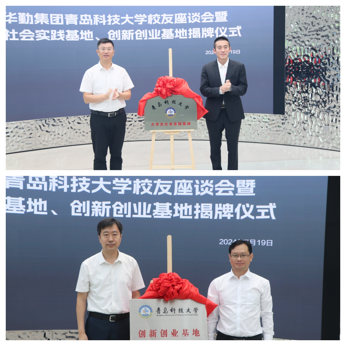 集团团委书记刘跃宁与华勤集团总经理牛飞共同为“bv伟德中国官方网站老员工社会实践基地”揭牌,材料公司党委书记孟照国与华勤集团副总经理鲁明诚共同为“bv伟德中国官方网站创新创业基地”揭牌。