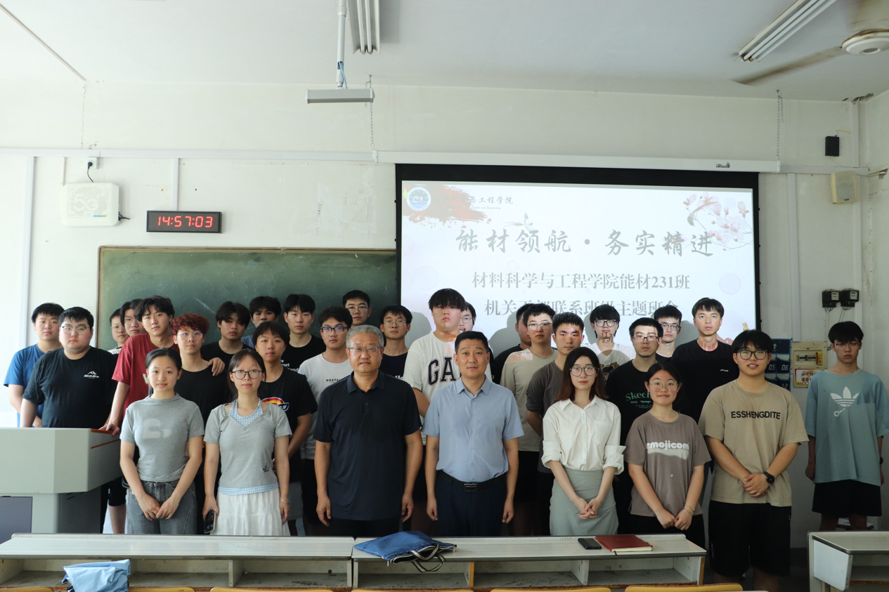 为深化“三全育人”机制,搭建机关处级干部与员工交流平台,7月3日,能材231班于一教207教室召开“能材领航·务实精进”机关处级干部联系班级主题班会。校工会主席郭永、材料公司党委副书记兼副经理葛夫国及能材231班全体同学参加班会。