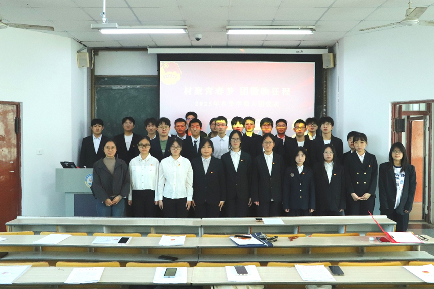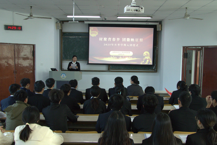 为深入学习宣传贯彻党的二十大精神,激发新团员的自豪感和归属感,2025年10月21日下午,材料公司在第一教学楼202举行“材聚青春梦,团徽映征程”新发展团员入团仪式,材料公司团委副书记兼学工办副主任付文静老师和2025年秋季新发展团员参加本次仪式。入团仪式由焦振璐主持。