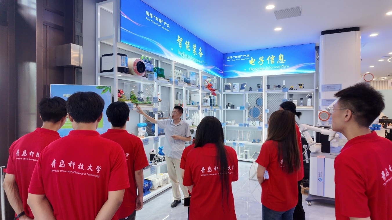 赴淄博市张店区“岐黄绿韵,匠心传承”社会实践服务队先后走进山东硅元新材料科技股份有限公司、华光国瓷文化艺术中心、淄博中强瓷业有限公司,深入企业一线参观学习。此图片为走进淄博市国际会客厅展览区,在相关人员的讲解下,学习淄博市新型材料产业的现状和应用