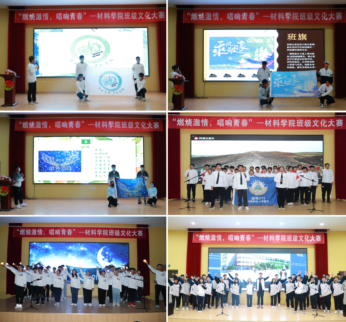 比赛在全体师生齐唱校歌《青春校园》中拉开帷幕。比赛中,2021级员工以班级为单位,通过介绍班旗与班徽的设计理念、班规班训、班级文化短视频等方式,向全场展现自己班级的昂扬风貌,各班别出心裁的设计和诙谐幽默的短视频也展现出当代材料学子的青春风采。在班歌展示环节中,《仰望星空》、 《平凡之路》、《夜空中最亮的星》、《倔强》等一首首激人奋进、鼓舞斗志的歌曲被各班级通过多彩的方式表现的淋漓尽致,各班级所选歌曲主题突出、青春靓丽、极富感染力和感召力,并充分发挥本班优势,融入手语的艺术表现形式,穿着自主设计的班级服装,多层次展示班级特色和员工发展特点;在歌曲间歇之余与台下互动,高喊班级励志口号,整个比赛场景气氛热烈激昂,员工们精神饱满,服装统一、整洁,展现了极佳的员工风貌。