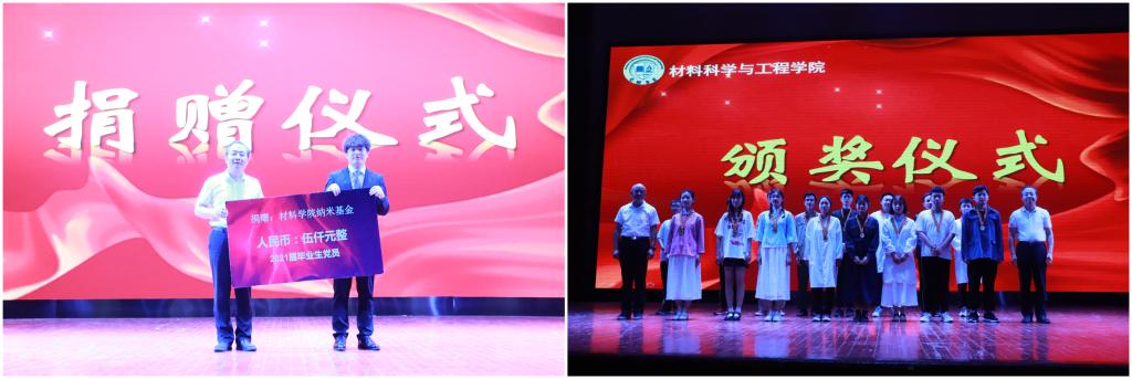 晚会现场,2021届毕业生党员代表向公司“纳米”基金发起捐赠,在致敬“艰苦创业 不断创新”的“纳米”精神的同时,用实际行动和爱心表达了对公司发展的关心和感激之情;为表彰2021届毕业生在党建、团学工作、优良学风建设等方面突出的集体和个人,公司党政领导为优秀集体和先进个人代表授“bv伟德突出贡献”奖牌。