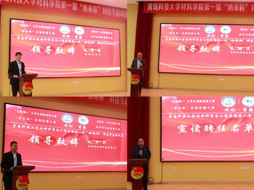 在启动仪式上,校团委书记毛常明首先向“纳米杯”科技节开幕表示祝贺,向材料公司全体团员青年致以五四青年节的问候。他指出,“纳米精神”已然成为科大精神、橡胶品格、五有理念在材料学科最生动的实践和最鲜活的体现;要以系统观念谋划科技节理念,以奋斗姿态组织好科技节活动,以育人情怀塑造好科技节品牌。他鼓励材料学子继续发扬刻苦学习、主动创新的良好传统,积极参与“挑战杯”、“互联网+”竞赛等赛事活动中。