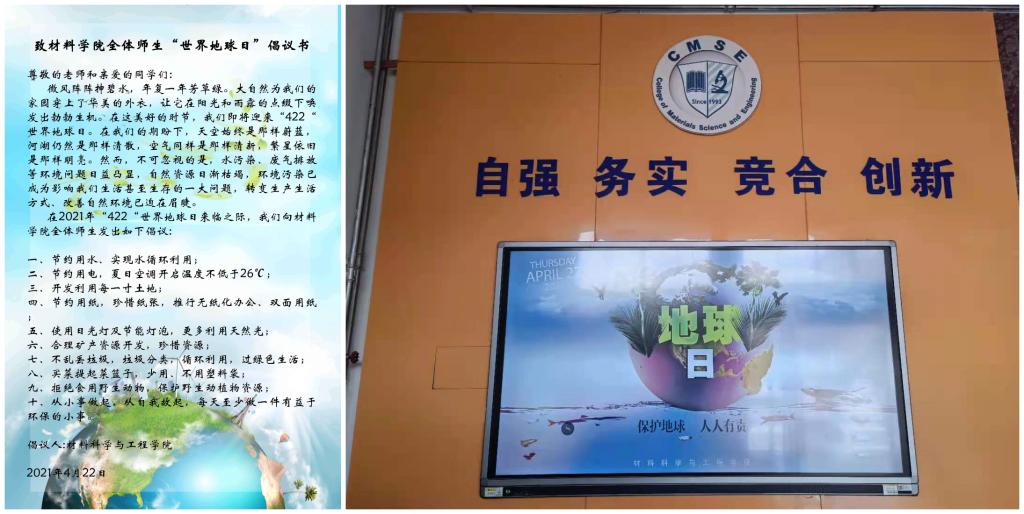 材料院积极开展“世界地球日”主题宣传教育活动,鼓励老员工从身边做起,爱护环境,保护地球。同时倡导员工“走近大自然”,为建设美丽中国贡献力量。