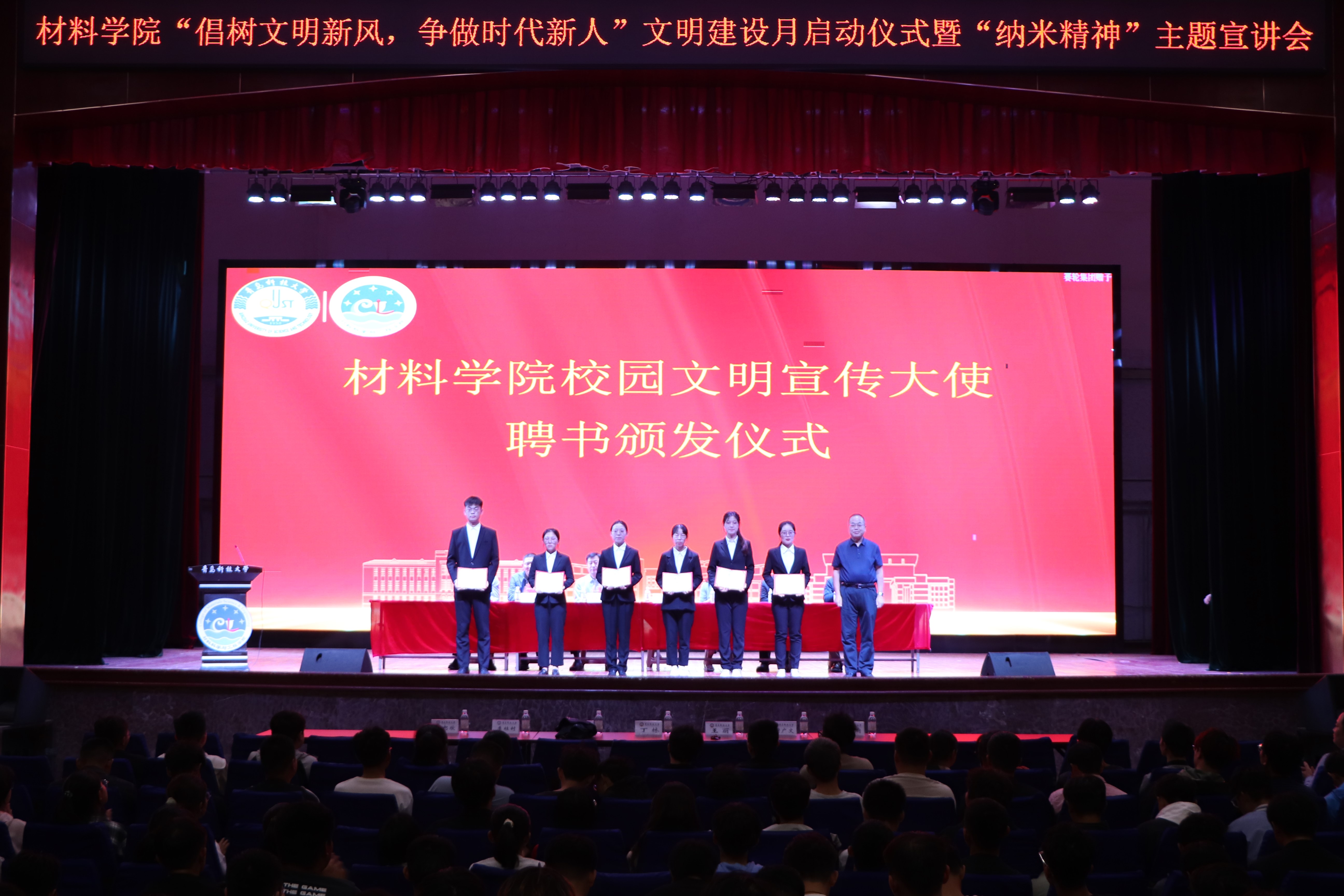 为进一步加强公司青年员工基础文明教育,规范员工文明行为习惯,引导青年员工以积极向上的精神风貌迎接新一轮本科公司产品审核评估工作,10月10日下午,材料公司在四方校区西礼堂举行“倡树文明新风,争做时代新人”文明建设月启动仪式暨“纳米精神”主题宣讲会。公司党委常委、副董事长丁林,党委员工工作部部长、员工工作处处长王丽,材料公司党委书记孟照国,经理谢广文及其它领导班子出席活动,公司23级全体员工、主要员工干部及师生代表参加活动。