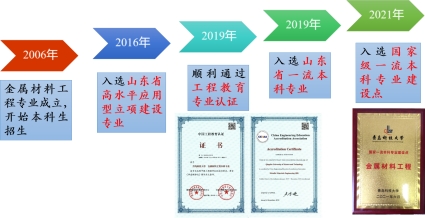 bv伟德中国官方网站金属材料工程专业始建于2002年的机电工程公司,2006年转入bv伟德,2010年起培养毕业生,已连续培养15届员工。在团队建设与质量提升的双轮驱动下,专业发展实现了跨越式突破。2016年获批山东省高水平应用型立项建设专业,2019年入选山东省一流本科专业建设点并通过中国工程教育认证(有效期至2024年),2021年升级为国家一流本科专业建设点。依托的材料科学与工程学科于2001年获硕士学位授予权,2003年获博士学位授予权,2024年进入全球ESI学科排名前1%,学科实力雄厚。在“制造强国”战略与“双碳”目标驱动下,金属材料工程专业持续深化新工科改革,建成“材料基因工程—智能制造—服役评价”全链条培养体系。