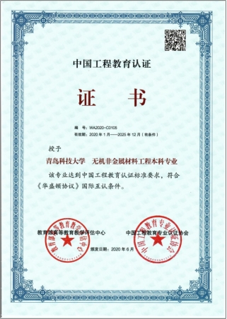 2001年无机非金属材料工程专业创建;2003年“材料学”获得博士学位授予权;2011年“材料学”获得山东省“十二五”重点学科;2012年本专业被评为“校级品牌与特色专业”;2016年“材料科学与工程学科”获批山东省一流学科ESI(基本科学指标)前1%;2020年“无机非金属材料工程”专业通过教育部工程专业认证;2025年专业获公司“人工智能+专业”立项建设。